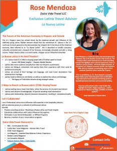 Rose Mendoza is the founder & curator of Dulce Vida Travel LLC. The company offers specialized unique Mexican heritage travel tours & travel services for individuals, groups, friends and organizations.